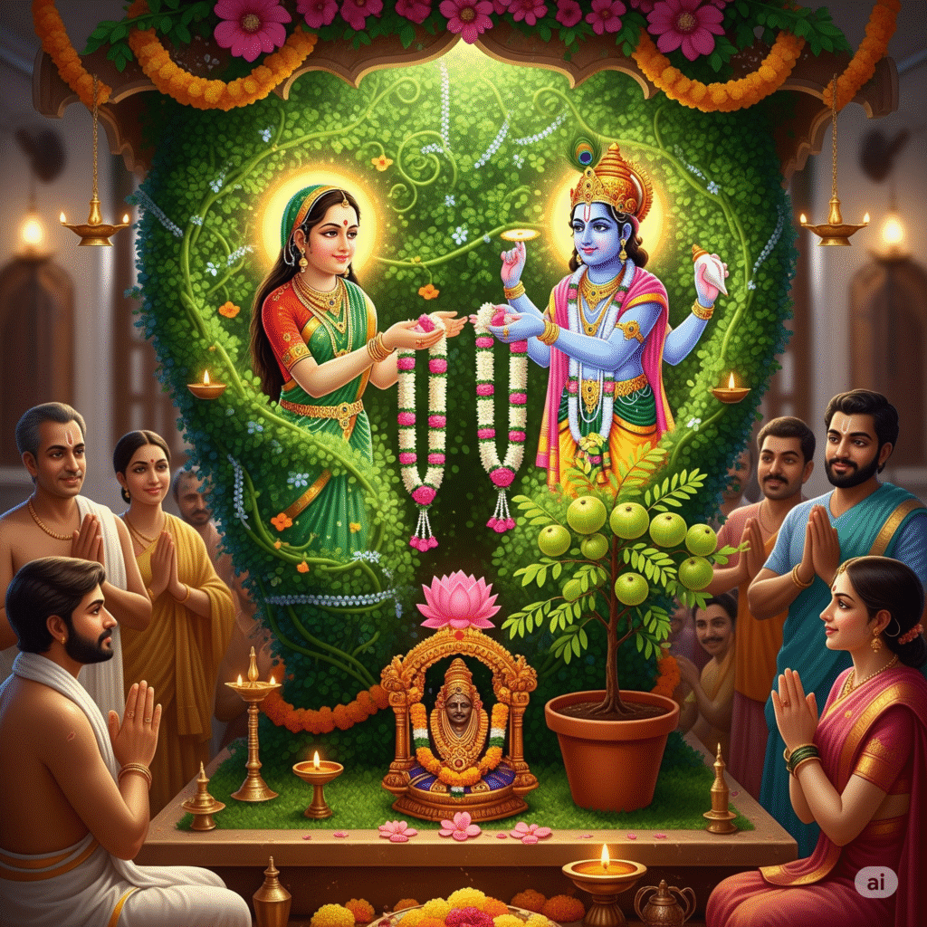 ದಂತಕಥೆಯ ಪ್ರಕಾರ, ವೃಂದ(ತುಳಸಿ) ಒಬ್ಬ ಸುಂದರ ಮತ್ತು ಭಕ್ತಿಯುಳ್ಳ ಮಹಿಳೆಯಾಗಿದ್ದು, ವಿಷ್ಣುವಿನ ಪರಮಭಕ್ತೆಯಗಿದ್ದಳು. ಜಲಂಧರ ಎಂಬ ರಾಕ್ಷಸ ರಾಜನನ್ನು ಮದುವೆಯಾದಳು. ಜಲಂಧರನು ಶಿವನಿಂದ ಪಡೆದ ವರದಿಂದಾಗಿ ಶಕ್ತಿಶಾಲಿಯಾಗಿದ್ದನು, ಅವನ ಹೆಂಡತಿಯ ಪಾತಿವ್ರತ್ಯವು ಅಖಂಡವಾಗಿರುವವರೆಗೆ ಅವನನ್ನು ಅಜೇಯನನ್ನಾಗಿ ಮಾಡಿದವು. ಆಹಂಕಾರದಿಂದ ದೇವತೆಗಳಿಗೆ ಹಿಂಸಿಸಲು ತೊಂದರೆ ನೀಡಲು ಆರಂಭಿಸಿದನು. ಜಲಂಧರನಿಂದ ತೊಂದರೆಗೊಳಗದ ದೇವತೆಗಳು ವಿಷ್ಣುವಿನ ಮೋರೆ ಹೋದರು. ವಿಷ್ಣುವು ಜಲಂಧರನ ವೇಷ ಧರಿಸಿ ತುಳಸಿಯ ಪಾತಿವ್ರತ್ಯ ಶಕ್ತಿಯನ್ನು ಮುರಿದನು, ಇದು ಜಲಂಧರನ ಸೋಲಿಗೆ ಕಾರಣವಾಯಿತು. ಯುದ್ಧದಲ್ಲಿ ವಿಷ್ಣು ಜಲಂಧರನನ್ನು ಸೋಲಿಸಿದನು ಮತ್ತು ಸಂಹರಿಸಿದನು. ಸತ್ಯ ತಿಳಿದ ವೃಂದ ಹೃದಯವಿದ್ರಾವಕಳಾಗಿ ವಿಷ್ಣುವನ್ನು ಶಿಲೆಯಾಗುವಂತೆ ಶಪಿಸಿದಳು. ವಿಷ್ಣುವು ವೃಂದಳ ಶಾಪವನ್ನು ಸ್ವೀಕರಿಸಿ ತನ್ನನ್ನು ಸಾಲಿಗ್ರಾಮ ಶಿಲೆಯಾಗಿ ಪರಿವರ್ತಿಸಿಕೊಂಡನು. ನಂತರ ವಿಷ್ಣುವನ್ನು ಶಪಿಸಿದ್ದಕ್ಕಾಗಿ ಪಶ್ಚಾತ್ತಾಪಪಟ್ಟ ವೃಂದ ಅವನ ಕ್ಷಮೆಗಾಗಿ ಪ್ರಾರ್ಥಿಸಿದಳು ಮತ್ತು ಅವನ ಪಕ್ಕದಲ್ಲಿ ಪೂಜಿಸಲ್ಪಡುವ ವರವನ್ನು ಪಡೆದಳು. ಕಾಲನಂತರ ಪಾರ್ವತಿದೇವಿ ತಯಾರಿಸಿದ ಬೃಂದಾವನದಲ್ಲಿ ತುಳಸಿಯಾಗಿ ಹುಟ್ಟಿಬರುತ್ತಾಳೆ. ಪಾರ್ವತಿಯ ಬೃಂದಾವನದಲ್ಲಿ ಜನಿಸಿದ ತುಳಸಿ ನಂತರ ರುಕ್ಮಿಣಿಯಾಗಿ ಜನ್ಮ ಪಡೆಯುತ್ತಾಳೆ. ವಿಷ್ಣುದೇವನು ವೃಂದಳಿಗೆ ನೀಡಿದ ವರದಂತೆ ಶ್ರೀಹರಿಯ ಅವತಾರವಾದ ಶ್ರೀಕೃಷ್ಣನು ರುಕ್ಮಿಣಿಯನ್ನು ಕಾರ್ತಿಕ ಮಾಸದ ಶುದ್ಧ ದ್ವಾದಶಿ (ಉತ್ಥಾನ ದ್ವಾದಶಿ) ದಿನ ವಿವಾಹವಾಗುತ್ತಾನೆ. ಆ ದಿನದಂದು ಜನರು ವಿಷ್ಣುರೂಪಿಯಾದ ಬೆಟ್ಟದ ನೆಲ್ಲಿಕಾಯಿ ಗಿಡವನ್ನು, ತುಳಸಿಯ ಬೃಂದಾವನದಲ್ಲಿ ಇರಿಸಿ ಪೂಜಿಸುತ್ತಾರೆ ಮತ್ತು ತುಳಸಿ ಹಬ್ಬವೆಂದೇ ಆಚರಿಸುವುದು ವಿಶೇಷ.