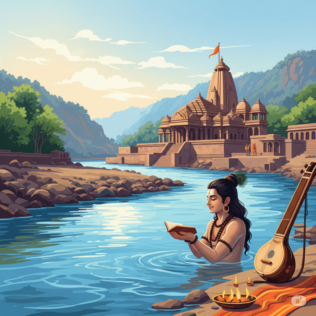 ಸರಸ್ವತೀನದಿಯು ಹಿಮಾಲಯದ ಶಿವಾಲಿಕ ಬೆಟ್ಟದಲ್ಲಿ ಹುಟ್ಟುವ ನದಿ. ಇವಳು ಬಹುಭಾಗ ಅಂತರ್ಗಾಮಿಯಾಗಿಯೇ ಹರಿಯುವಳು. ಇದಕ್ಕೆ ಒಂದು ಸುಂದರವಾದ ಪೌರಾನೀಕ ಕಥೆಯೂ ಇದೆ. ಒಮ್ಮೆ ವೇದವ್ಯಾಸರು ಸರಸ್ವತೀದಂಡೆಯ ಮೇಲೆ ಕುಳಿತು ಪುರಾಣ ರಚನೆಯಲ್ಲಿ ತೊಡಗಿದ್ದರು. ಪಾರ್ವತೀಪುತ್ರ ಗಣಪತಿ ಲೇಖನಕಾರ್ಯದಲ್ಲಿ ಮುಳುಗಿದ್ದ. ಸರಸ್ವತೀಯು ಬಂಡೆಕಲ್ಲುಗಳ ಮಧ್ಯದಲ್ಲಿ ವೇಗವಾಗಿ ಹರಿಯುತ್ತಾ ಹೆಚ್ಚಿನ ಶಬ್ದವನ್ನುಂಟುಮಾಡಿದಳು. ಗಣಪತಿಗೆ ವ್ಯಾಸರ ಮಾತುಗಳು ಕೇಳದಂತಾದವು. ನಾರಾಯಣಾವಾತಾರಿಗಳಾದ ವ್ಯಾಸರು ಕೋಪಗೊಂಡಂತೆ ನಟಿಸಿದರು. ಸರಸ್ವತೀ ! ನೀನು ಅಂತರ್ಗಾಮಿಯಾಗು. ನಿನ್ನ ಪ್ರವಾಹ ಮೇಲೆ ಕಾಣಿಸುವುದು ಬೇಡ ಎಂದರು ತಕ್ಷಣ ಸರಸ್ವತೀ ಭೂಮಿಯಲ್ಲಿ ಹೊಕ್ಕು ಅದೃಶ್ಯಳಾದಳು. ಇದನ್ನು ಸಾಮ, ಯಜು, ಋಗ್ವೇದಗಳ ವಚನಗಳು ಸಮರ್ಥಿಸುತ್ತವೆ. ಭಾರತವು ಸಹ ಇದನ್ನೇ ಹೇಳಿದೆ.